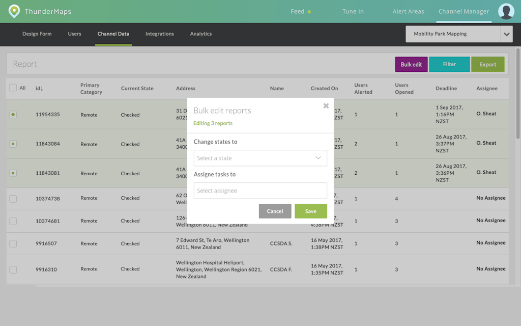 How-to: On the Channel Manager, click the ‘Channel Data’ panel. Select the reports to change by clicking the checkboxes next to each report. Then click ‘Bulk Edit’ and select the state the reports should be changed to. It will save heaps of time!